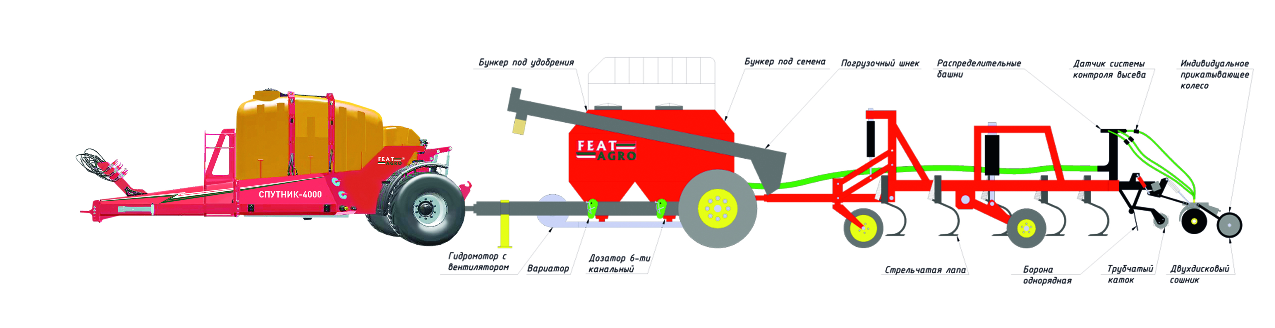 2. Посевные комплексы с высевом в двухдисковый сошник для внесения жидких удобрений агрегатируются  с автоматической системой внесения жидких удобрений "Спутник-4000" или  "Спутник-6000"